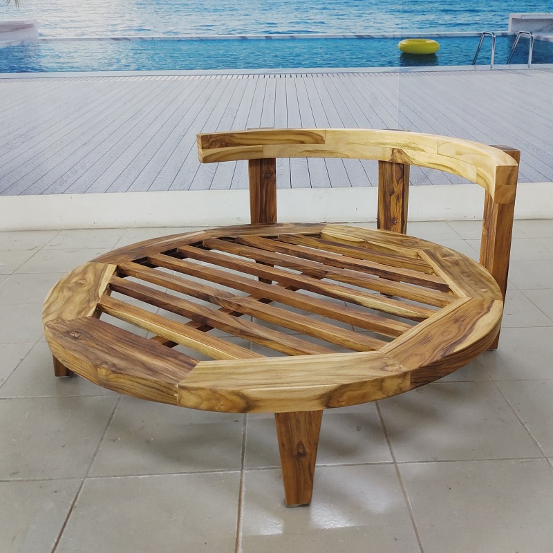 Descripción: Sillon redondo de madera natural para exterior modelo Bilbao con cojines de poliuretano de alta densidad y forro de tela acrílica 100% para exteriores (tono a escoger).